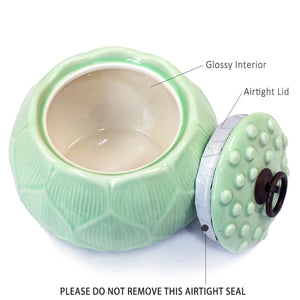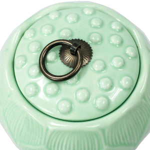 Dahlia Lotus Shaped Glazed Celadon Handcrafted Porcelain Tea Canister