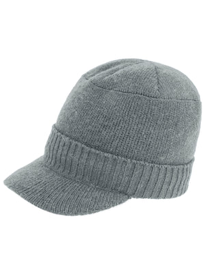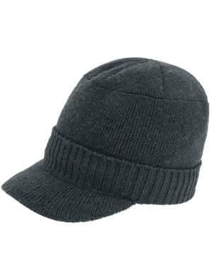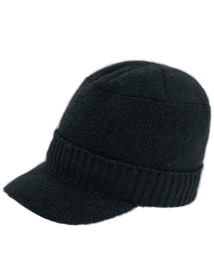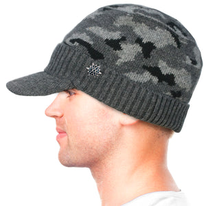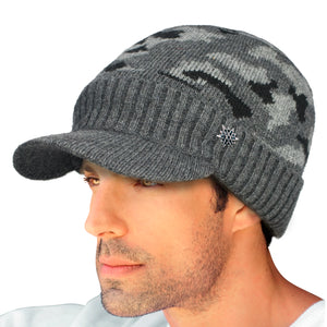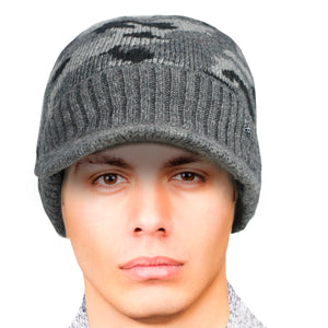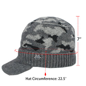 Men's Wool Blend Visor Beanie Cap, Velour Fleece Lined